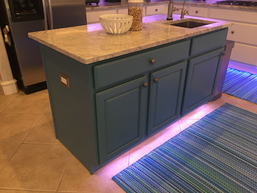Blue cabinets are set against a white worktop, walls and floors, adding contrast and dimension. Here are my 10 favorite kitchen island colors to help you with your choice. The wall cabinetry is glacier white.